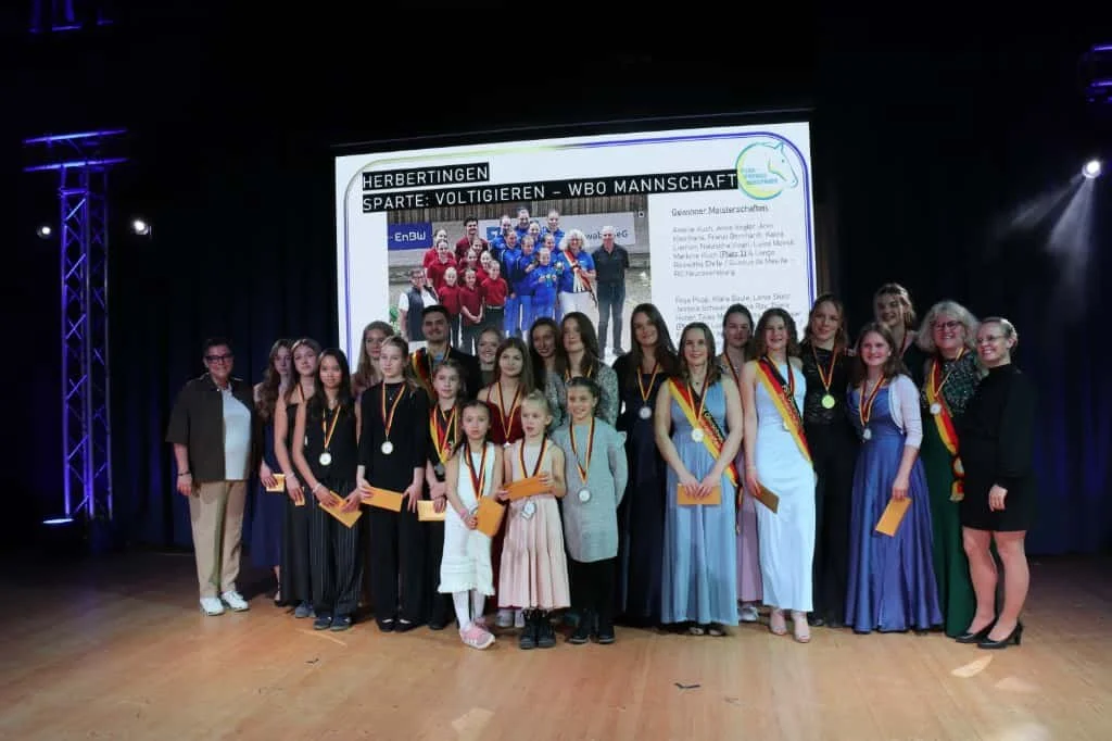 🥇 Neuravensburg mit Anne Vogler, Amelie und Marlene Kuch, Anni Kleinhans, Natascha Vogel, Lara-Marisa Jungmann, Franzi Bernhardt, Luisa Meindl und Kalea Liemen auf Quintus an der Longe von Roswitha Ehrle